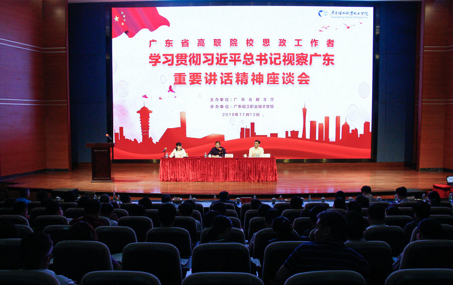 11月13日上午,由省教育厅举办、我校承办的广东省高职院校思政工作者学习贯彻习近平总书记视察广东重要讲话精神座谈会在南海校区图书馆报告厅召开。省教育厅思想政治工作与宣传处处长袁本新、副处长倪熙出席座谈会,党委书记杜安国在会上致辞。43所高职院校的党委宣传部、学生工作处主要负责同志思政课骨干教师共计200余人参加座谈会。